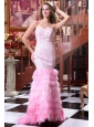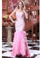Sweetheart Mermaid Beading and Ruffled Layers Sweep Train Prom Dress