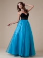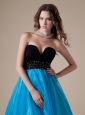 Home >  Prom Dresses >  Discount Prom Dresses > Sweetheart Neckline Beaded Decorate Waist Black and Teal Organza A-line Floor-length 2013 Prom / Evening Dress