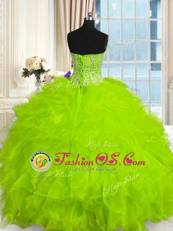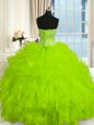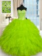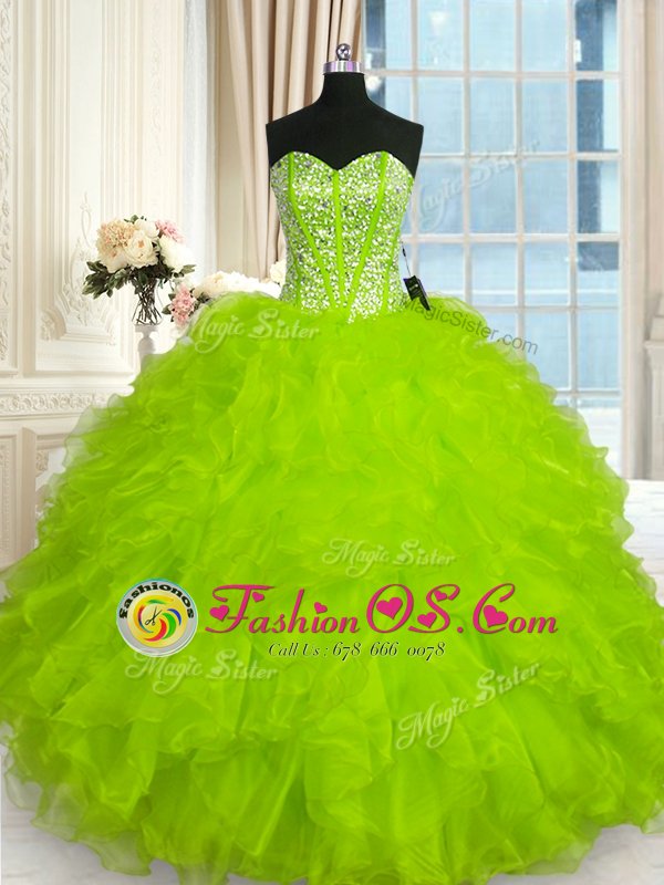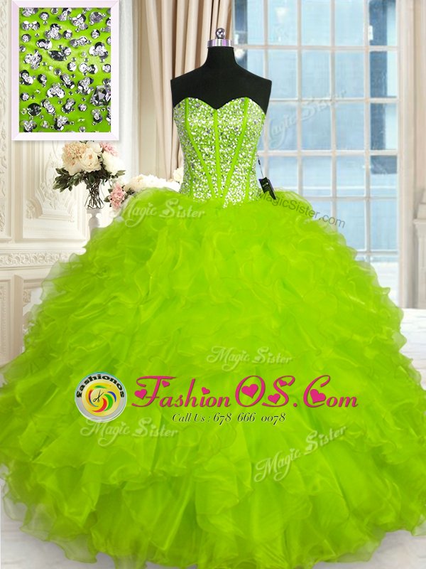 Sweetheart Neckline Beading and Ruffles Quince Ball Gowns Sleeveless Lace Up