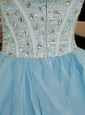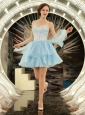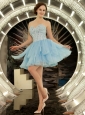 Sweetheart Organza Beaded Decorate Bodice Mini-length A-line Light Blue Cocktail Prom Gowns
