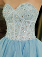 Home >  Special Occasion Dresses >  Homecoming Dresses > Sweetheart Organza Beaded Decorate Bodice Mini-length A-line Light Blue Cocktail Prom Gowns