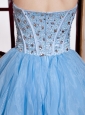 Sweetheart Organza Beaded Decorate Bodice Mini-length Light Blue Cocktail Prom Gowns