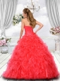 Sweetheart Organza Hot Pink Quinceanera Dress with Beading