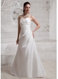Simple yet elegant! The white wedding gown dress is highlighted with a magnificant sweetheart and ruching has been place thougtfully on the structured bodice. The A-line skirt has folds pooling at the feet attached a brush train. A lace up corset style closure in the back secures the dress in place. You will be a belle in your wedding ceremony
