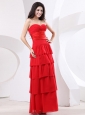 You are sure to "wow" at the first sight of this charming red dress. It features a sweetheart neckline and ruched bodice. The skirt is made of layers of chiffon and will flow freely when you move around. The hidden zipper on the back allows easy off and on and secures the dress in place. Take this dress home and show off your charm on your big day!