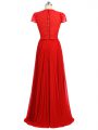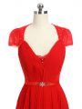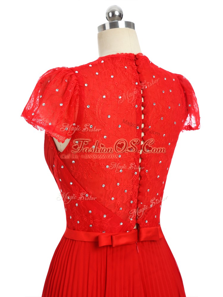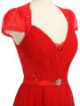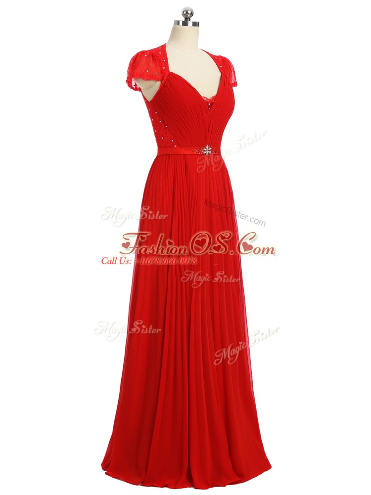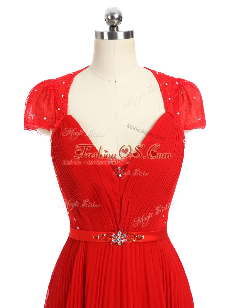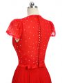 Sweetheart Short Sleeves Zipper Red Chiffon