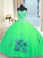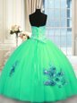 Sweetheart Sleeveless 15th Birthday Dress Floor Length Beading and Appliques and Embroidery Turquoise Tulle