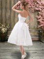 Sweetheart Sleeveless Bridal Gown Tea Length Appliques and Embroidery and Belt White Organza