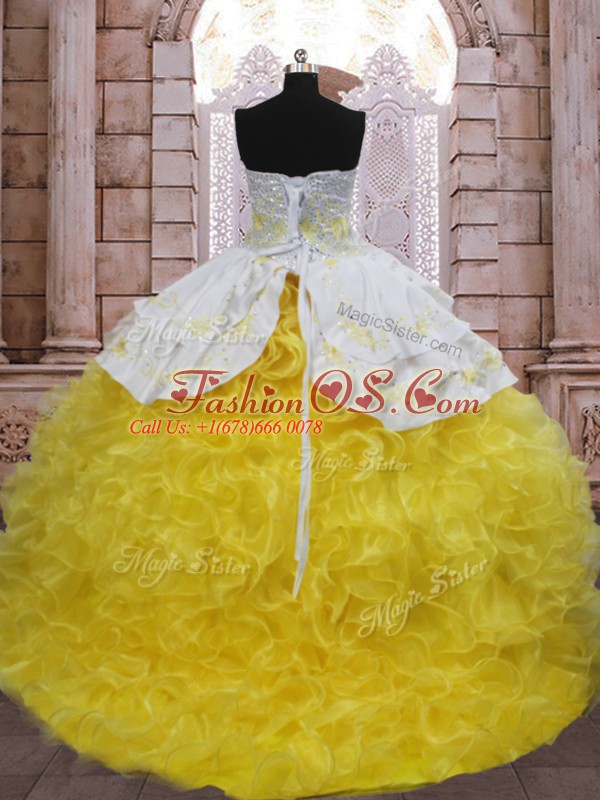 Sweetheart Sleeveless Brush Train Lace Up Sweet 16 Dresses Yellow And White Organza