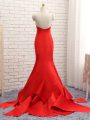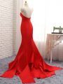 Sweetheart Sleeveless Brush Train Ruching Red Satin