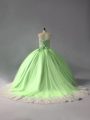 Sweetheart Sleeveless Court Train Lace Up Ball Gown Prom Dress Yellow Green Tulle