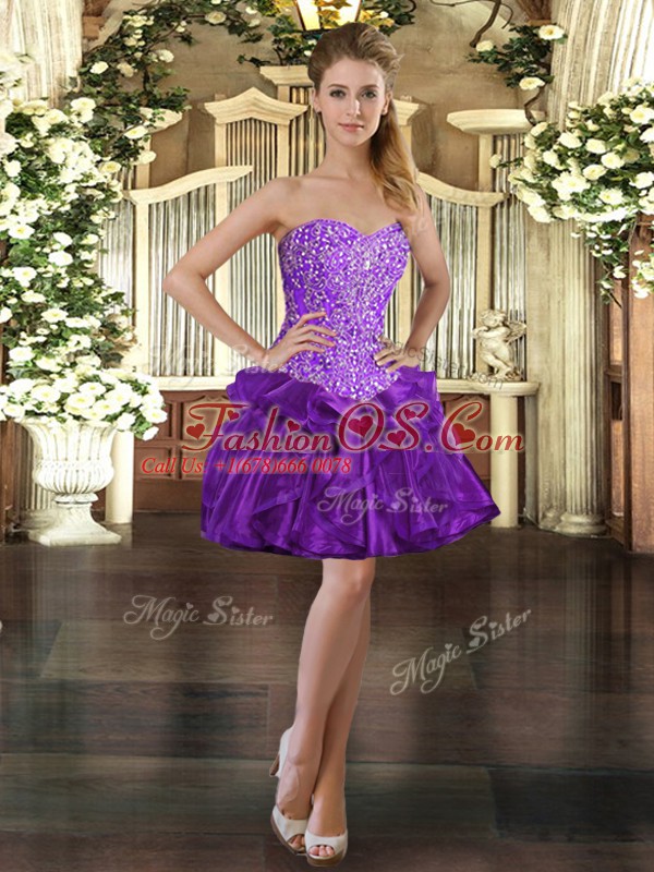 Home >  Prom Dresses >  Prom Dresses On Sale > Sweetheart Sleeveless Evening Dress Mini Length Beading and Ruffles Purple Organza