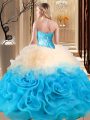 Sweetheart Sleeveless Fabric With Rolling Flowers Sweet 16 Quinceanera Dress Beading and Ruffles Lace Up