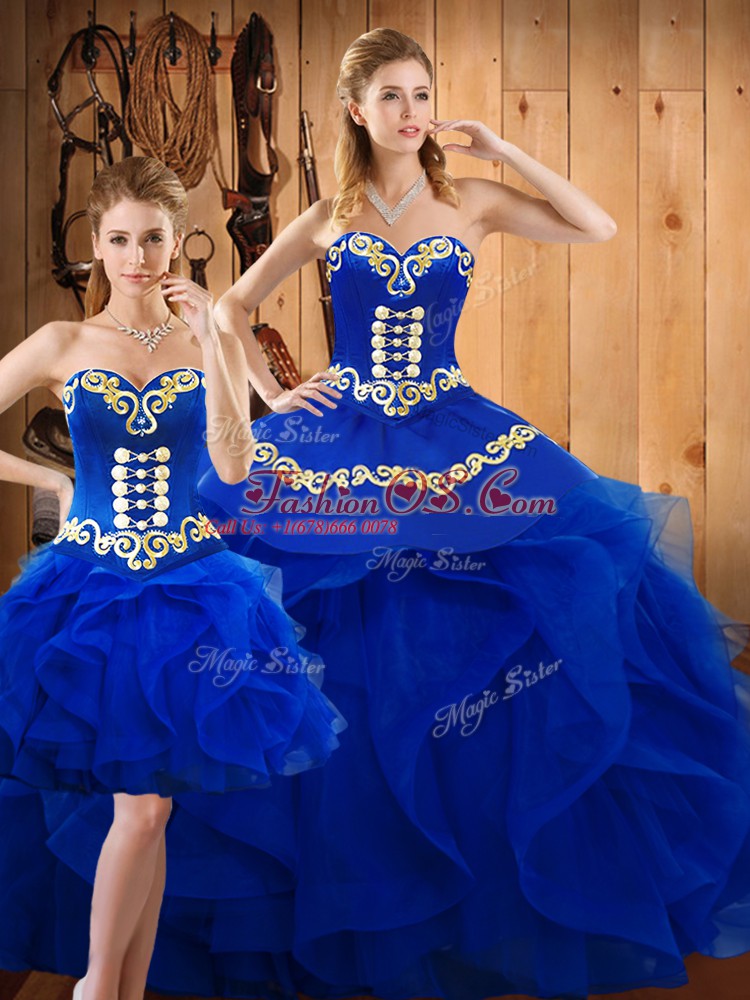 Home >  Quinceanera Dresses >  Detachable Quinceanera Skirts > Sweetheart Sleeveless Lace Up 15 Quinceanera Dress Blue Satin and Organza