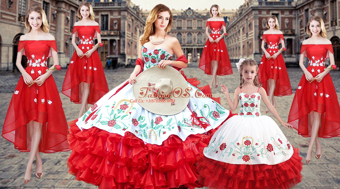 Home >  Quinceanera Dresses >  Quinceaneara Package > Sweetheart Sleeveless Lace Up 15th Birthday Dress Red Organza