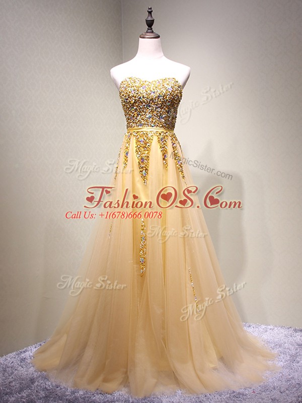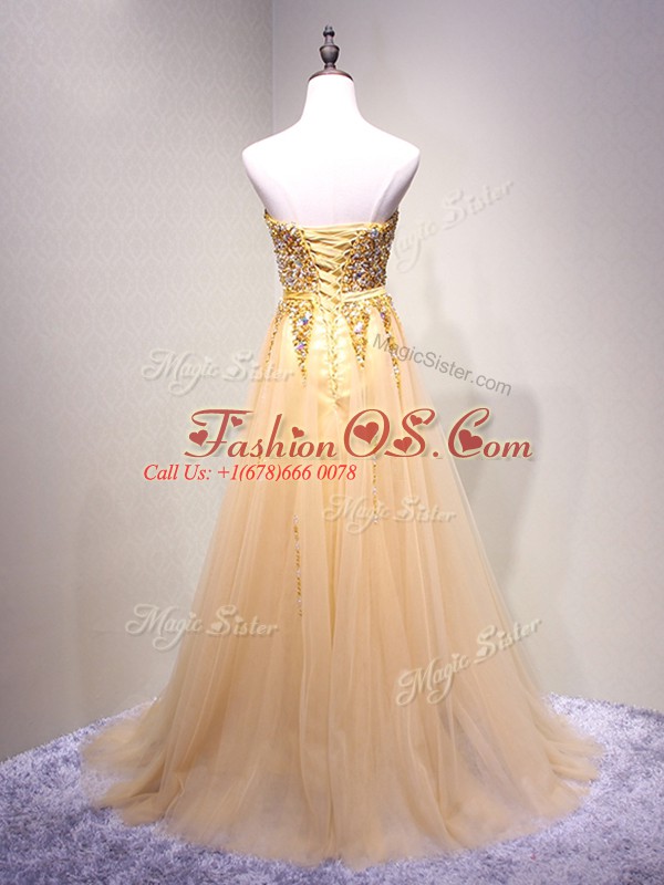 Sweetheart Sleeveless Lace Up Celebrity Style Dress Champagne Tulle