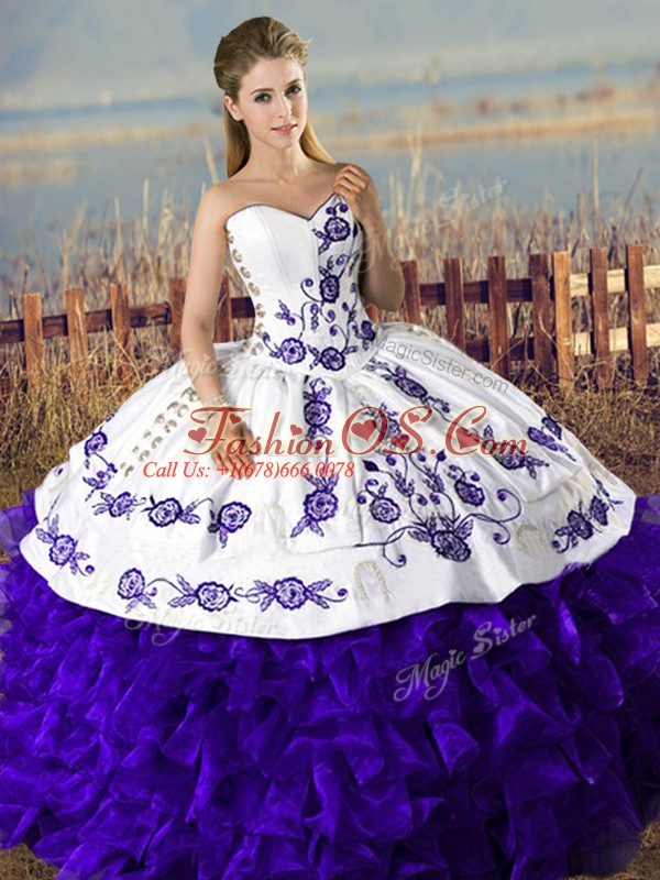 Sweetheart Sleeveless Lace Up Quinceanera Dress Purple Satin and Organza