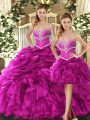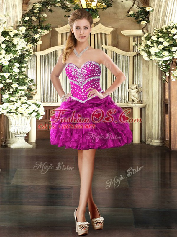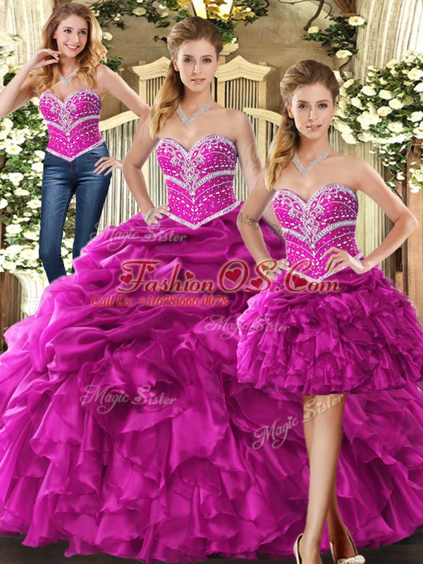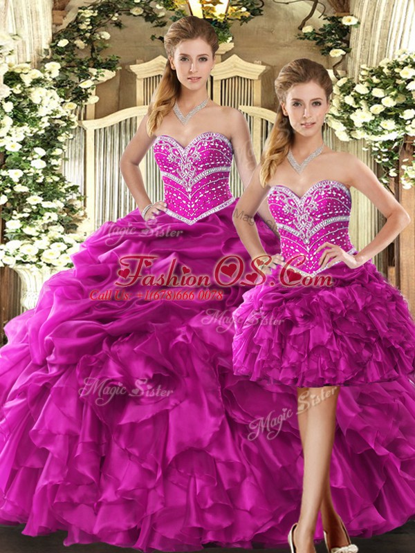Sweetheart Sleeveless Lace Up Quinceanera Dresses Fuchsia Organza