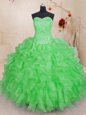 Sweetheart Sleeveless Lace Up Quinceanera Dresses Watermelon Red Organza