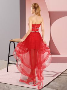 Sweetheart Sleeveless Lace Up Vestidos de Damas Coral Red Tulle