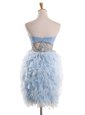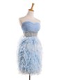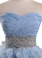 Sweetheart Sleeveless Mini Length Beading Light Blue Chiffon