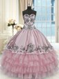 Home >  Quinceanera Dresses >  15 Quinceanera Dresses > Sweetheart Sleeveless Organza and Taffeta Quince Ball Gowns Beading and Embroidery and Ruffled Layers Lace Up
