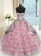 Sweetheart Sleeveless Organza and Taffeta Quince Ball Gowns Beading and Embroidery and Ruffled Layers Lace Up