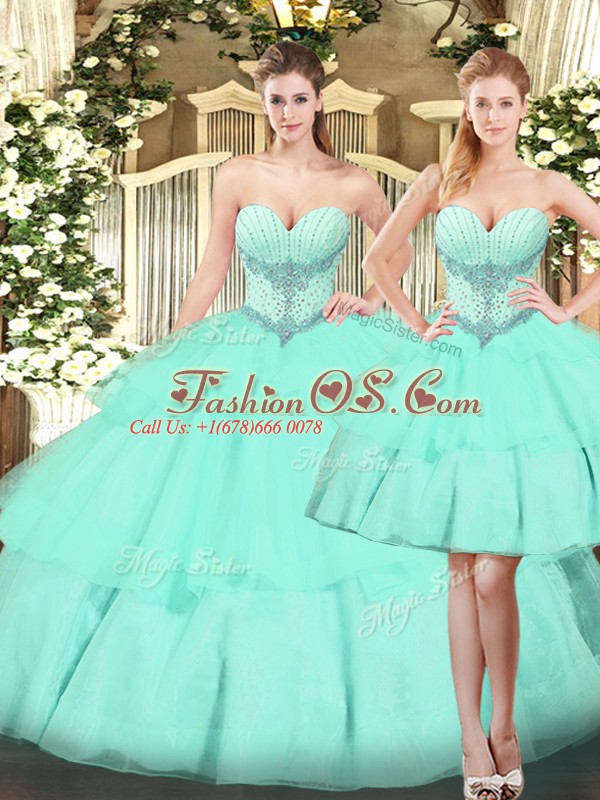 Home >  Quinceanera Dresses >  Detachable Quinceanera Skirts > Sweetheart Sleeveless Organza Quinceanera Dress Beading and Ruffled Layers Lace Up