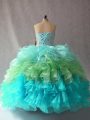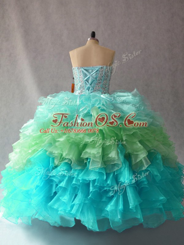 Sweetheart Sleeveless Organza Quinceanera Dresses Beading and Ruffles Lace Up
