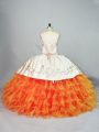 Sweetheart Sleeveless Organza Quinceanera Gown Embroidery and Ruffles Lace Up