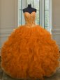 Home >  Quinceanera Dresses >  Sweet 16 Dresses > Sweetheart Sleeveless Organza Sweet 16 Dresses Beading and Ruffles Lace Up