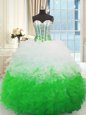 Sweetheart Sleeveless Organza Sweet 16 Quinceanera Dress Beading and Ruffles Brush Train Lace Up