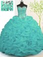 Home >  Quinceanera Dresses >  15 Quinceanera Dresses > Sweetheart Sleeveless Organza Sweet 16 Quinceanera Dress Beading and Ruffles Brush Train Lace Up