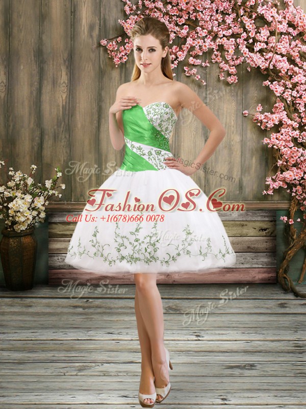 Sweetheart Sleeveless Prom Dress Mini Length Embroidery White Organza