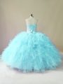 Sweetheart Sleeveless Quince Ball Gowns Floor Length Beading and Ruffles Aqua Blue Tulle