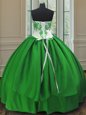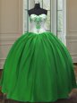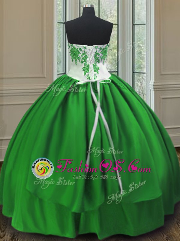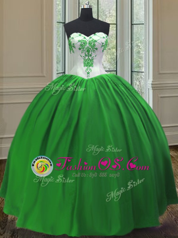 Sweetheart Sleeveless Quince Ball Gowns Floor Length Embroidery Green Taffeta