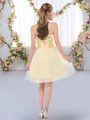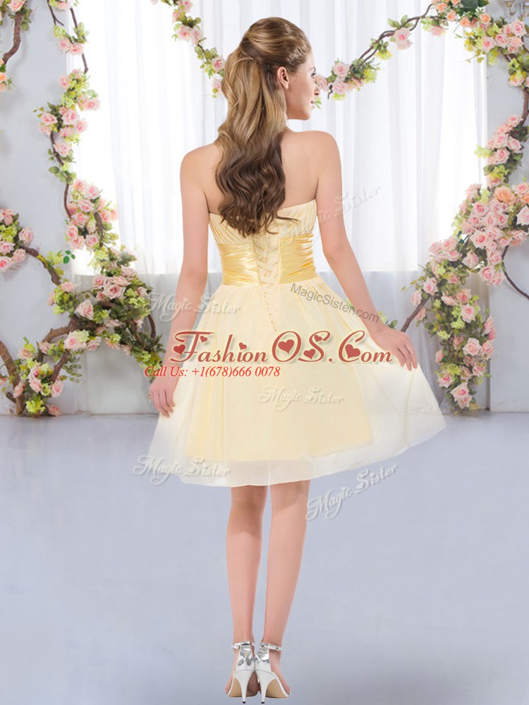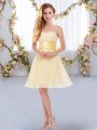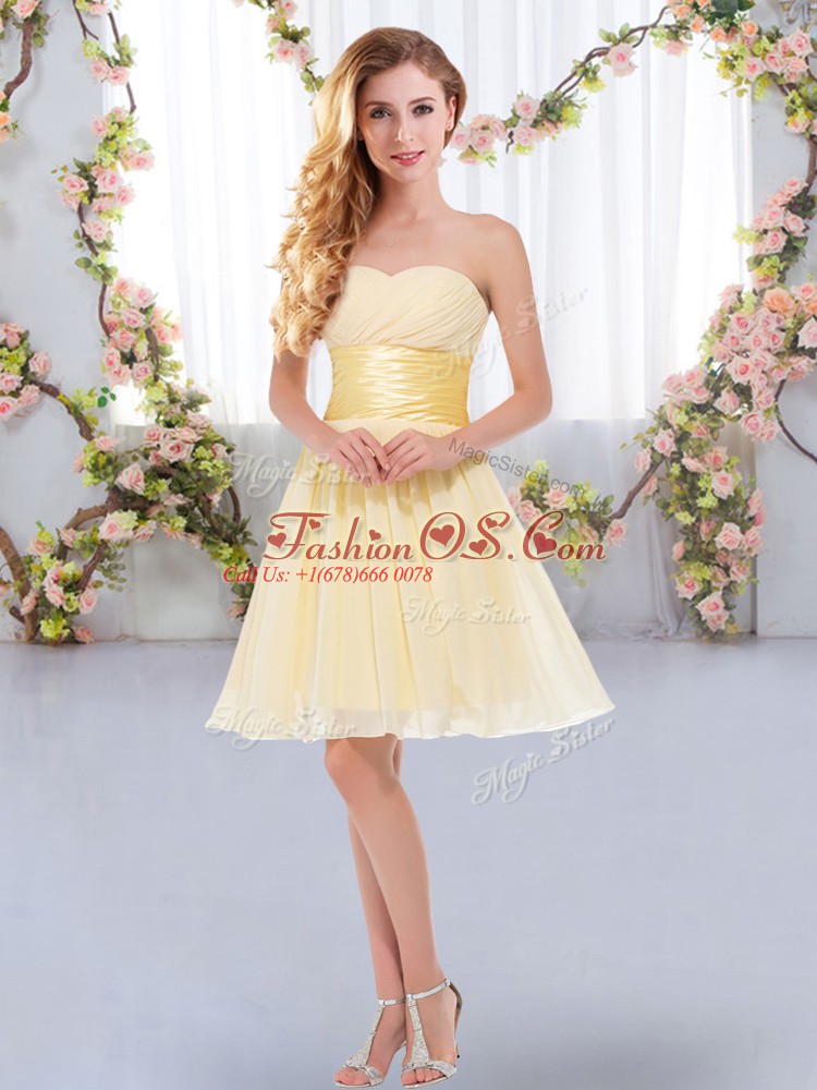 Sweetheart Sleeveless Quinceanera Dama Dress Mini Length Belt Yellow Chiffon