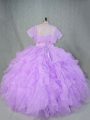 Sweetheart Sleeveless Quinceanera Dress Asymmetrical Beading and Ruffles Lavender Organza