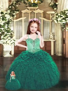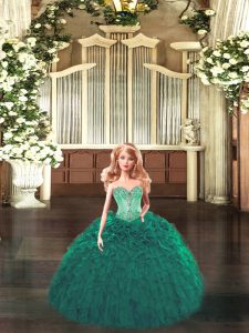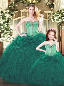 Sweetheart Sleeveless Quinceanera Dress Floor Length Beading and Ruffles Dark Green Tulle