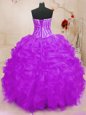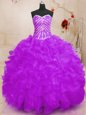 Sweetheart Sleeveless Quinceanera Dresses Floor Length Beading and Ruffles and Sequins Purple Organza