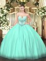 Home >  Quinceanera Dresses >  Luxurious Quinceanera Dresses > Sweetheart Sleeveless Quinceanera Gown Floor Length Beading Apple Green Satin