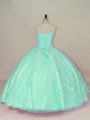 Sweetheart Sleeveless Quinceanera Gowns Floor Length Hand Made Flower Apple Green Tulle