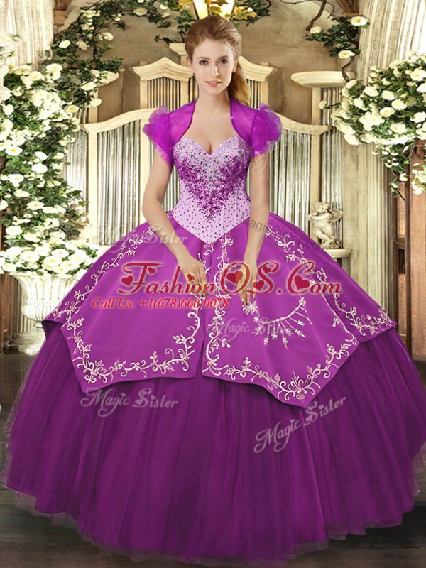 Sweetheart Sleeveless Satin and Tulle 15th Birthday Dress Beading and Embroidery Lace Up