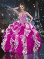 Sweetheart Sleeveless Sweet 16 Dresses Floor Length Beading and Ruffles Multi-color Organza