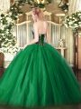 Home >  Quinceanera Dresses >  Fashionable Quinceanera Dresses > Sweetheart Sleeveless Sweet 16 Dresses Floor Length Beading Olive Green Tulle