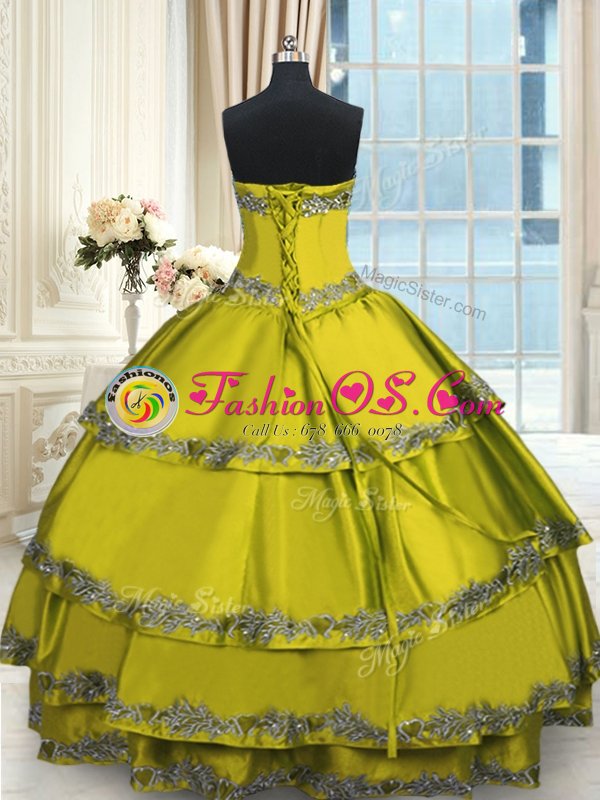 Sweetheart Sleeveless Sweet 16 Quinceanera Dress Floor Length Beading and Appliques and Ruffled Layers Olive Green Taffeta