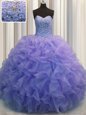 Sweetheart Sleeveless Sweet 16 Quinceanera Dress Floor Length Beading and Ruffles Blue Organza
