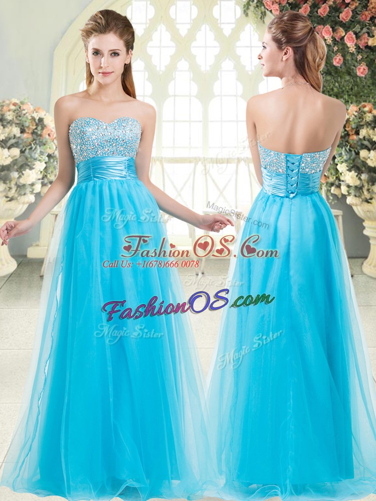 Sweetheart Sleeveless Tulle Beading Lace Up