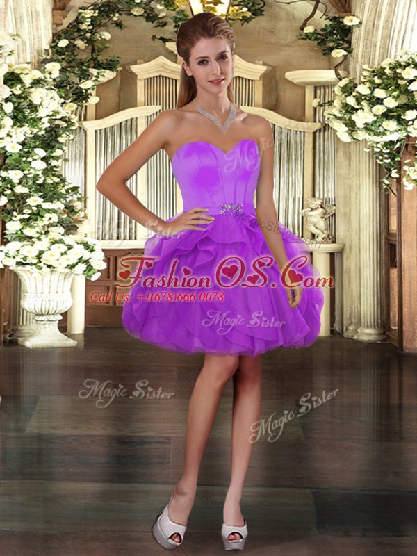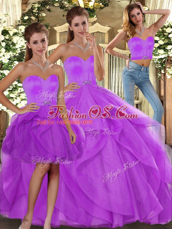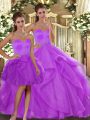 Sweetheart Sleeveless Tulle Quince Ball Gowns Beading and Ruffles Lace Up