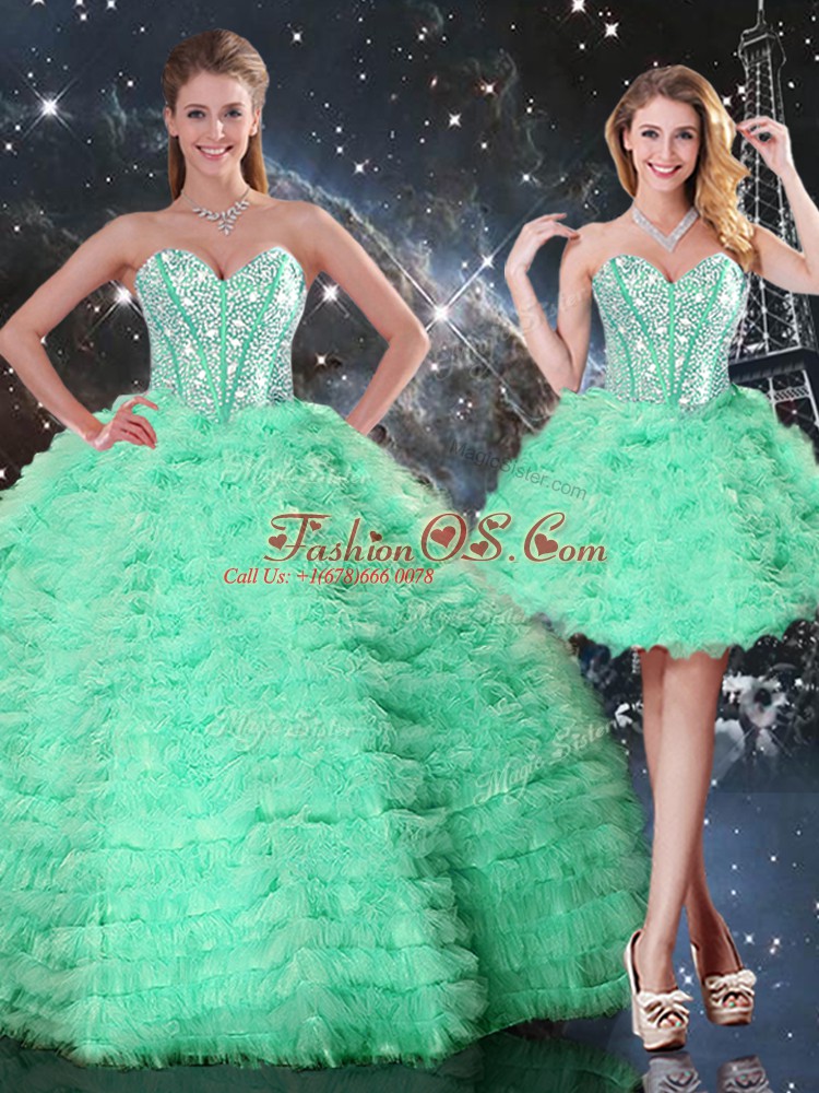 Home >  Quinceanera Dresses >  Detachable Quinceanera Skirts > Sweetheart Sleeveless Vestidos de Quinceanera Floor Length Beading and Ruffled Layers Apple Green Organza